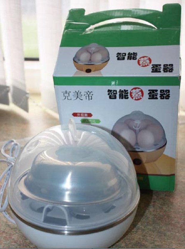 Risk of electric shock due to inadequate construction of the egg boiler and non-compliant and unsafe plug adaptor.