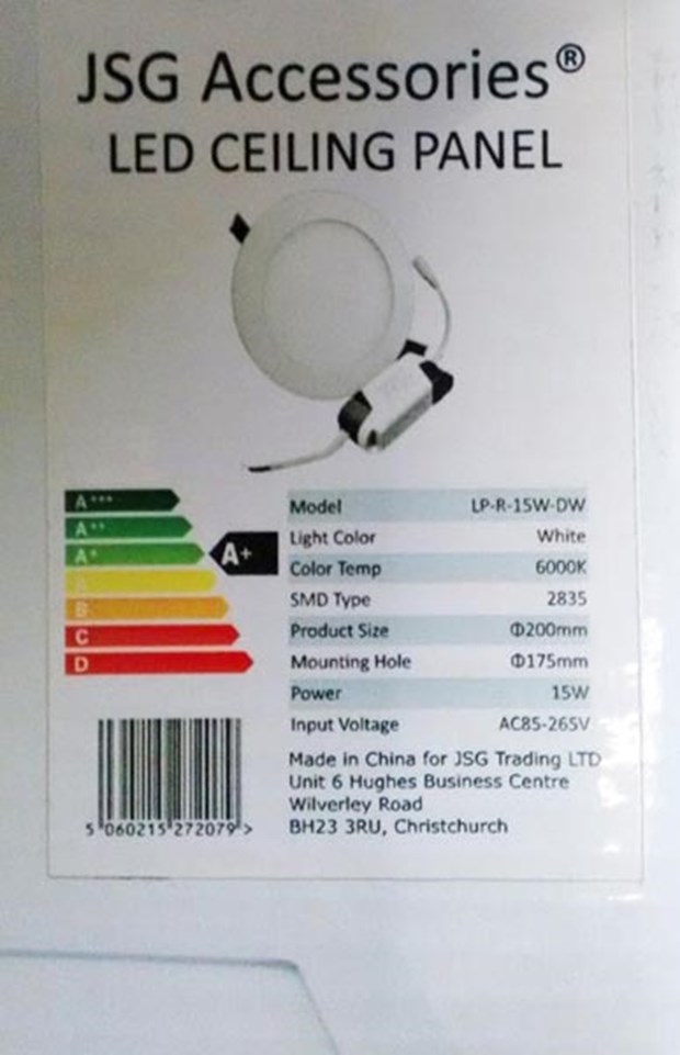 LED Panel light with attached driver, packed in a printed cardboard box. See images for more detail.