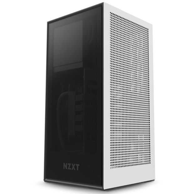 The computer cases have a black tempered glass front with the NZXT brand name at the bottom. The model number and serial number are located on the bottom of the case.