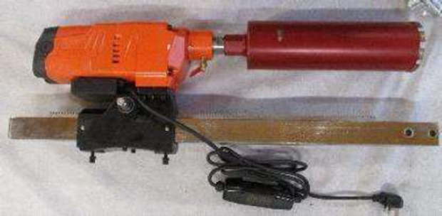 Black and orange drill supplied in brown cardboard packaging.
