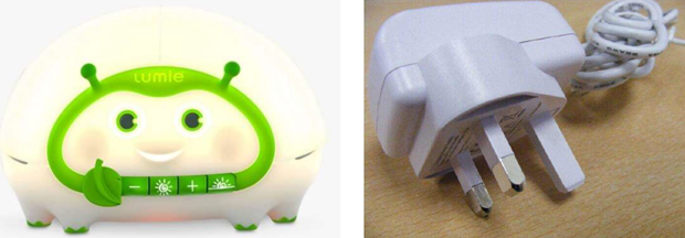 Green and white bedbug lamp supplied with a ‘Blue Iron’ brand power adaptor.