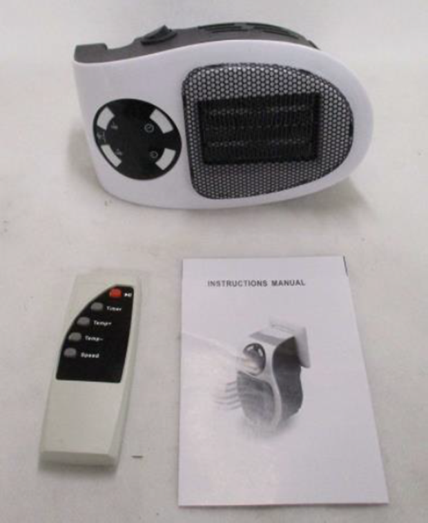 Portable electric heater 500W UK plug timer + remote control digital display.