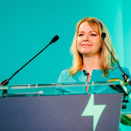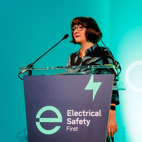 Electrical Safety First CEO Lesley Rudd giving the opening address