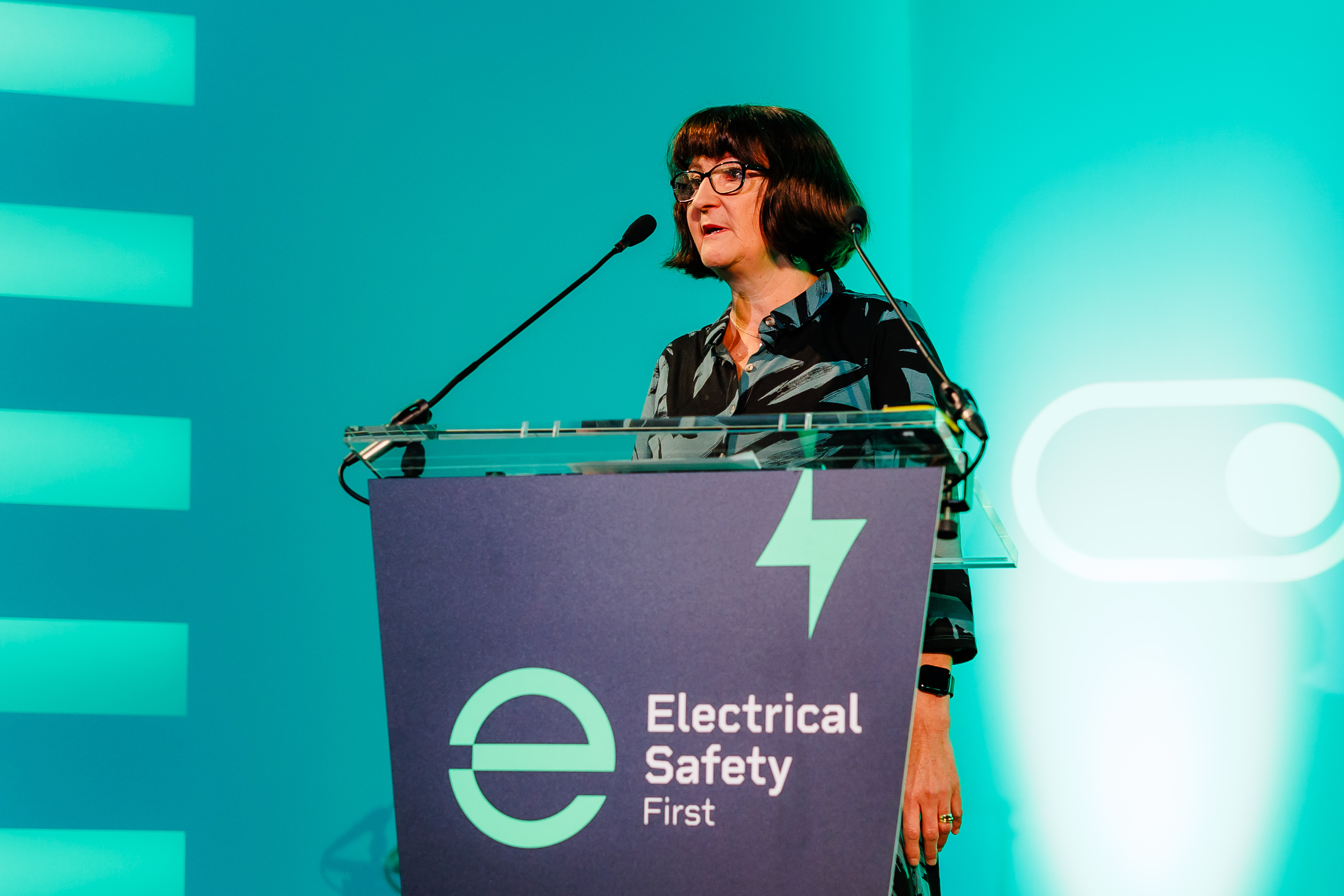 Electrical Safety First CEO Lesley Rudd giving the opening address
